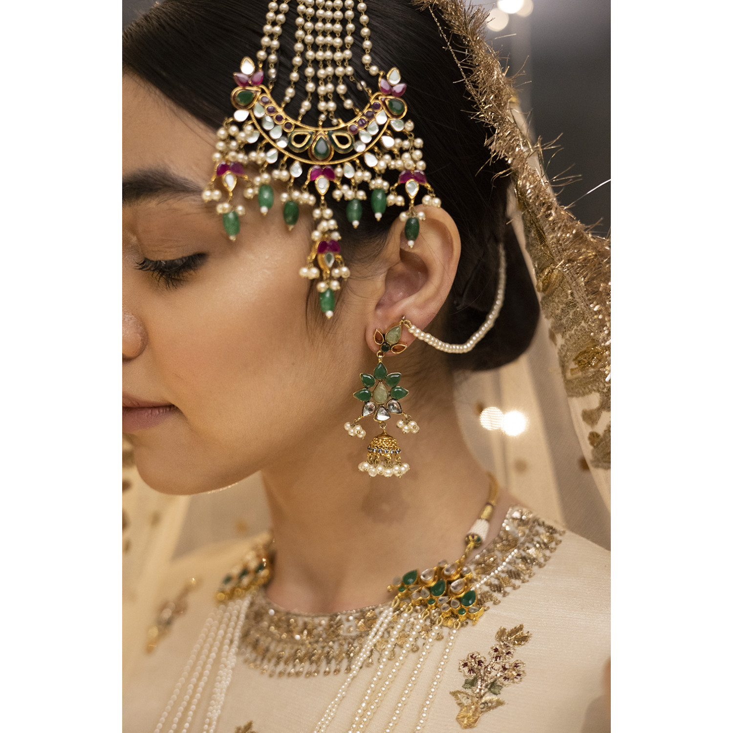 18k gold plated, natural amazonite green and red stones, kundan and white pearls  setting.