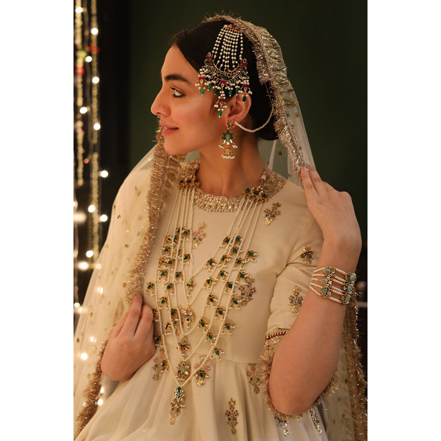 18k gold plated, natural amazonite green and red stones, kundan and white pearls setting.
