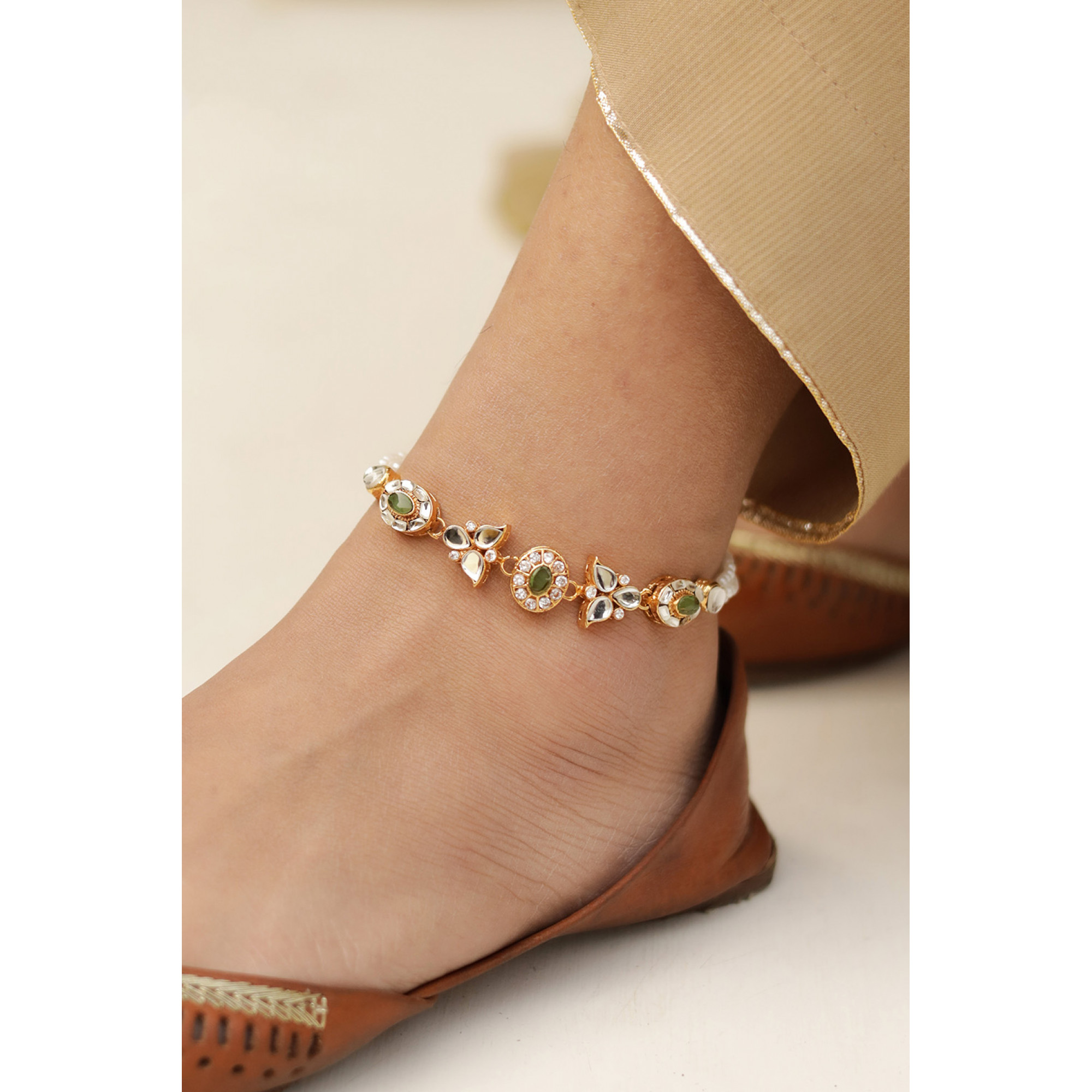 18k gold plated, Kundan, champaign zircons with white pearls setting.