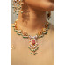18k gold plated, Kundan, red jasper natural stone with white and green pearls setting.