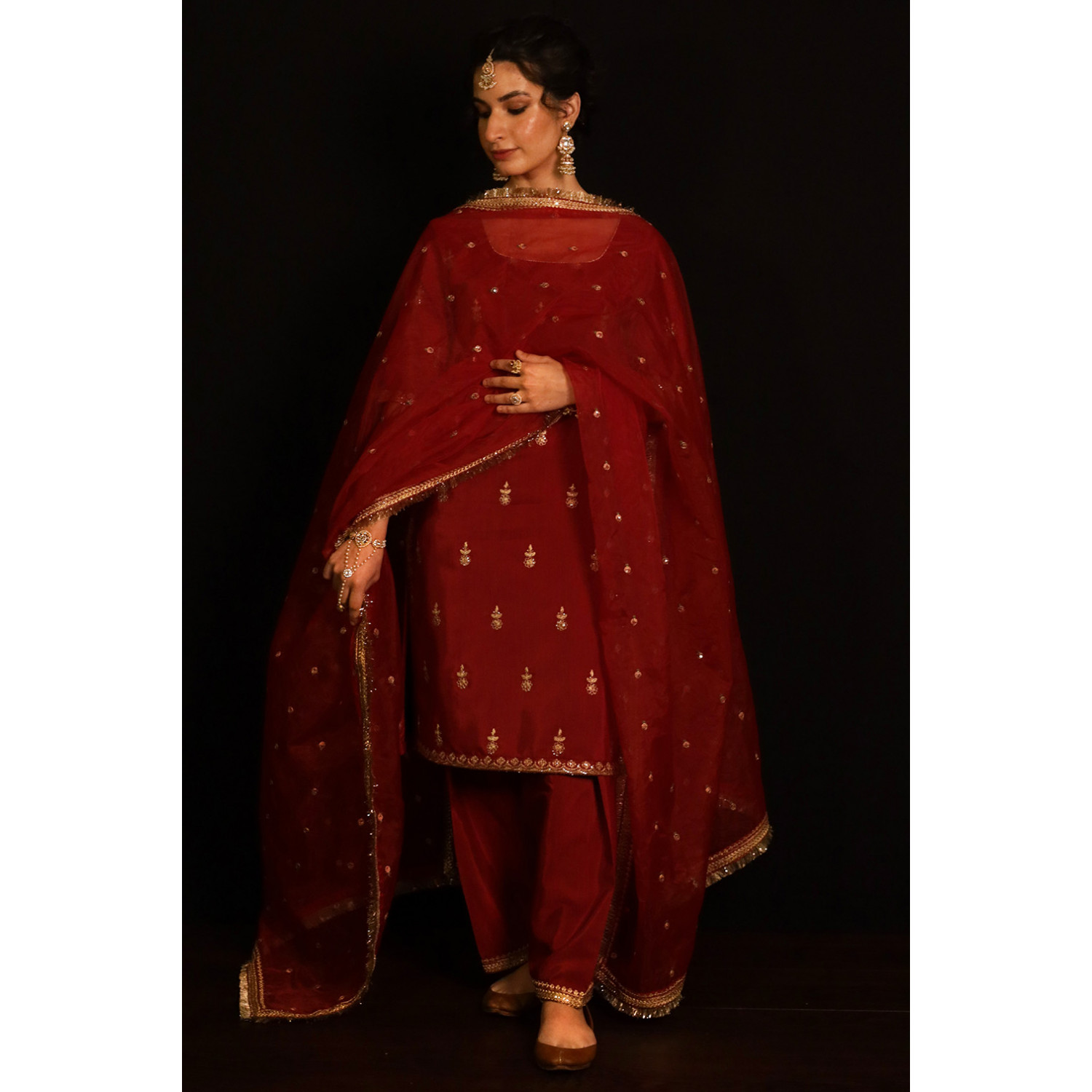 MATERIAL: SILK.  3-PC (Straight Kameez, SHALWAR & Dupatta)