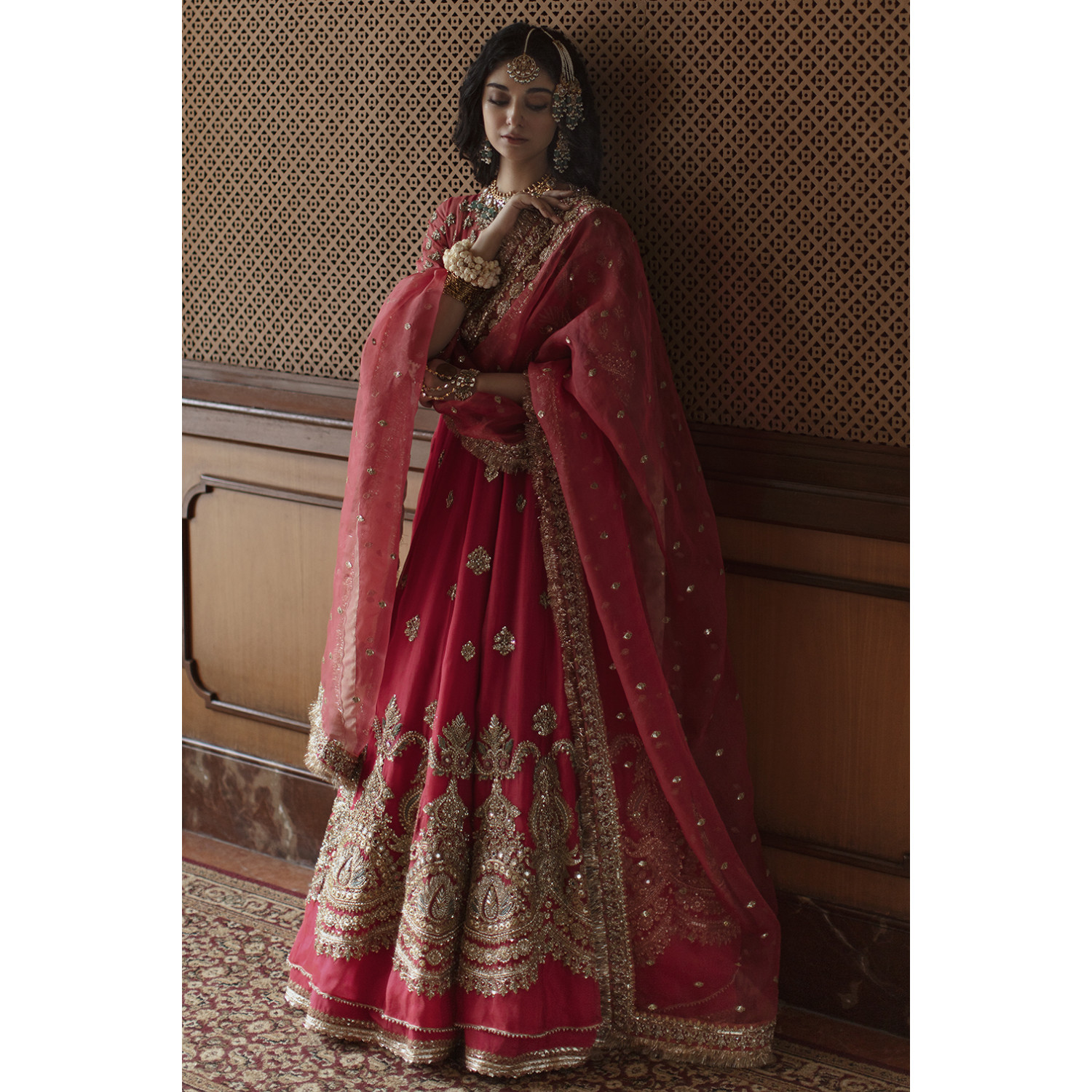 with intricate handwork of gold nakshi, resham, dabka and sequins finished with