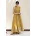 Visually pleasing subtle mustard kalidaar with a beautiful intricate wide tilla border paired with tilla and sequin spray splashed all over and is finished with gotti lace which compliments the outfit.