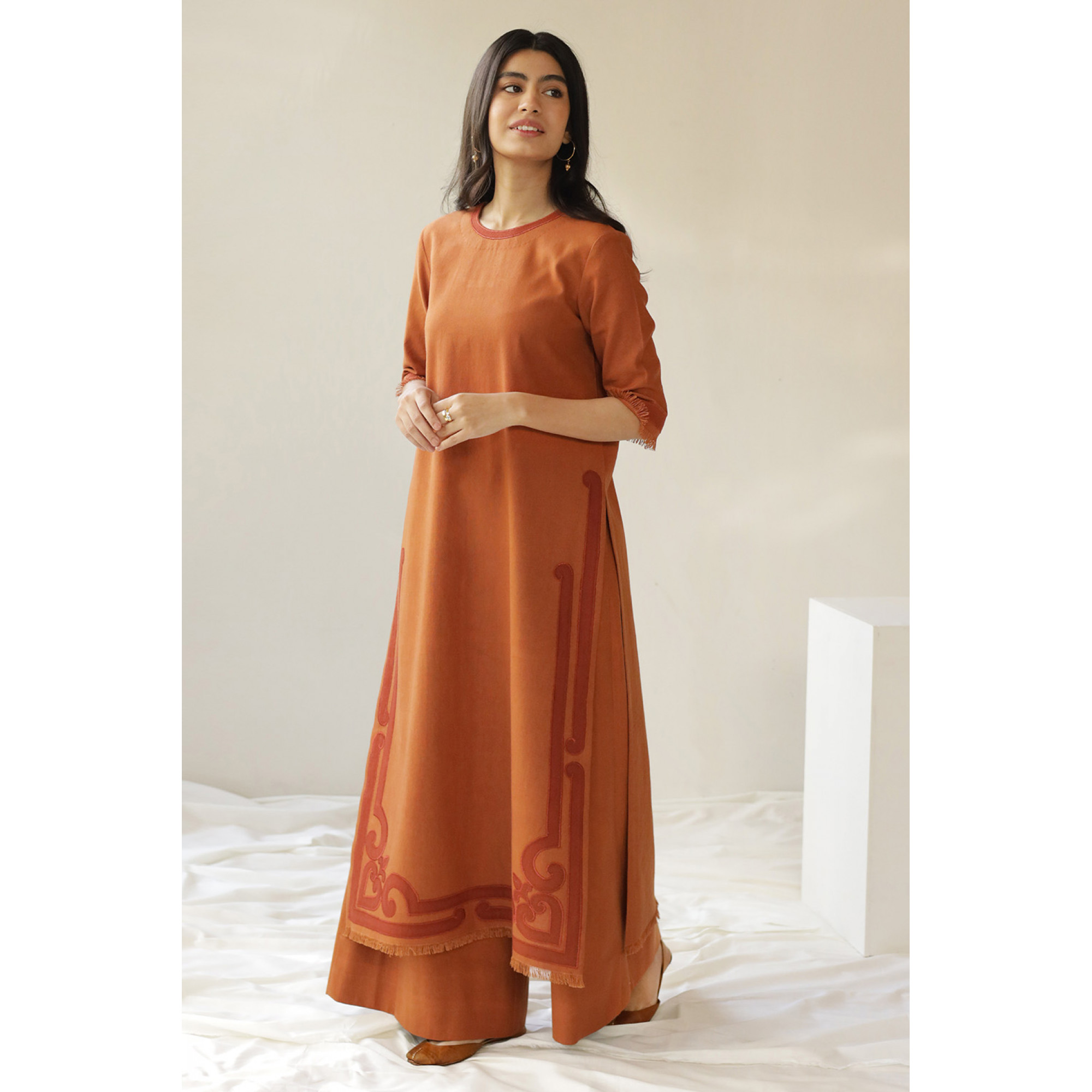 Material: Khaddar. 2-Pc (Straight Kameez & Sharara)